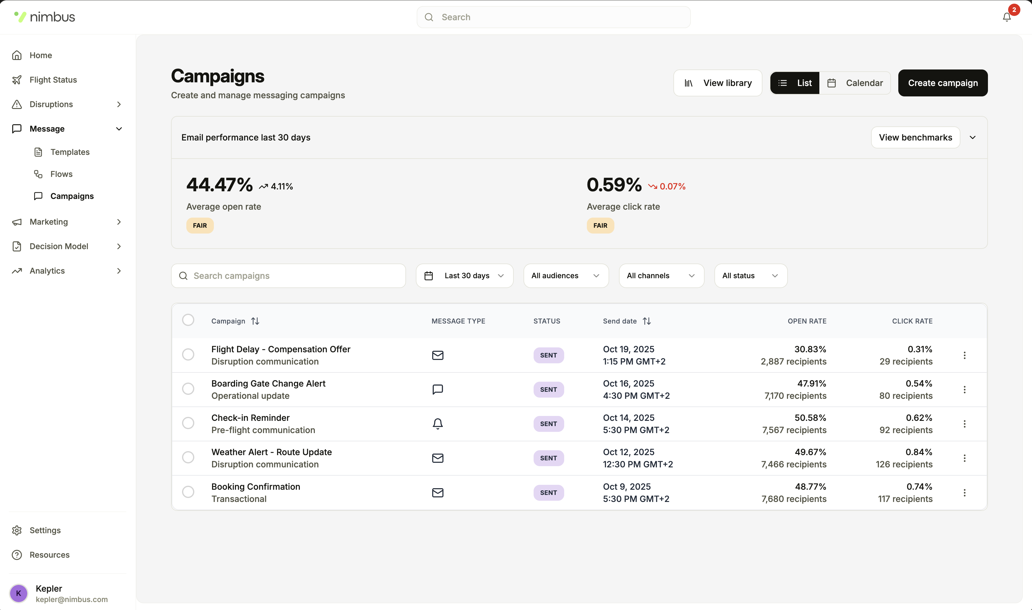 Track delivery rates, open rates and engagement across every channel.